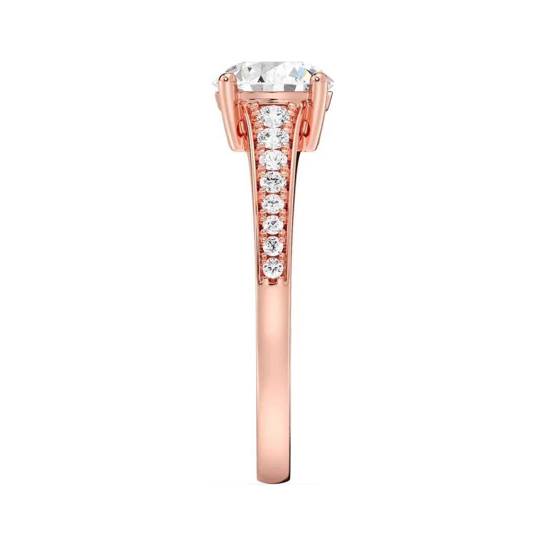 Make a statement with this 1.00ct Round-Cut Lab-Grown Diamond Ring, featuring a refined band that gracefully tapers from wide to narrow for an elegant, balanced silhouette. The IGI-certified center diamond radiates exceptional brilliance, perfectly complemented by 16 SGL-certified prong-set accent diamonds (0.21ct) that graduate in size along the shank — larger near the center and smaller toward the edge for a seamless flow of sparkle. Expertly crafted in 18K yellow, white, or rose gold, this ring embodies timeless beauty and contemporary craftsmanship, making it an exquisite choice for engagements or special occasions.