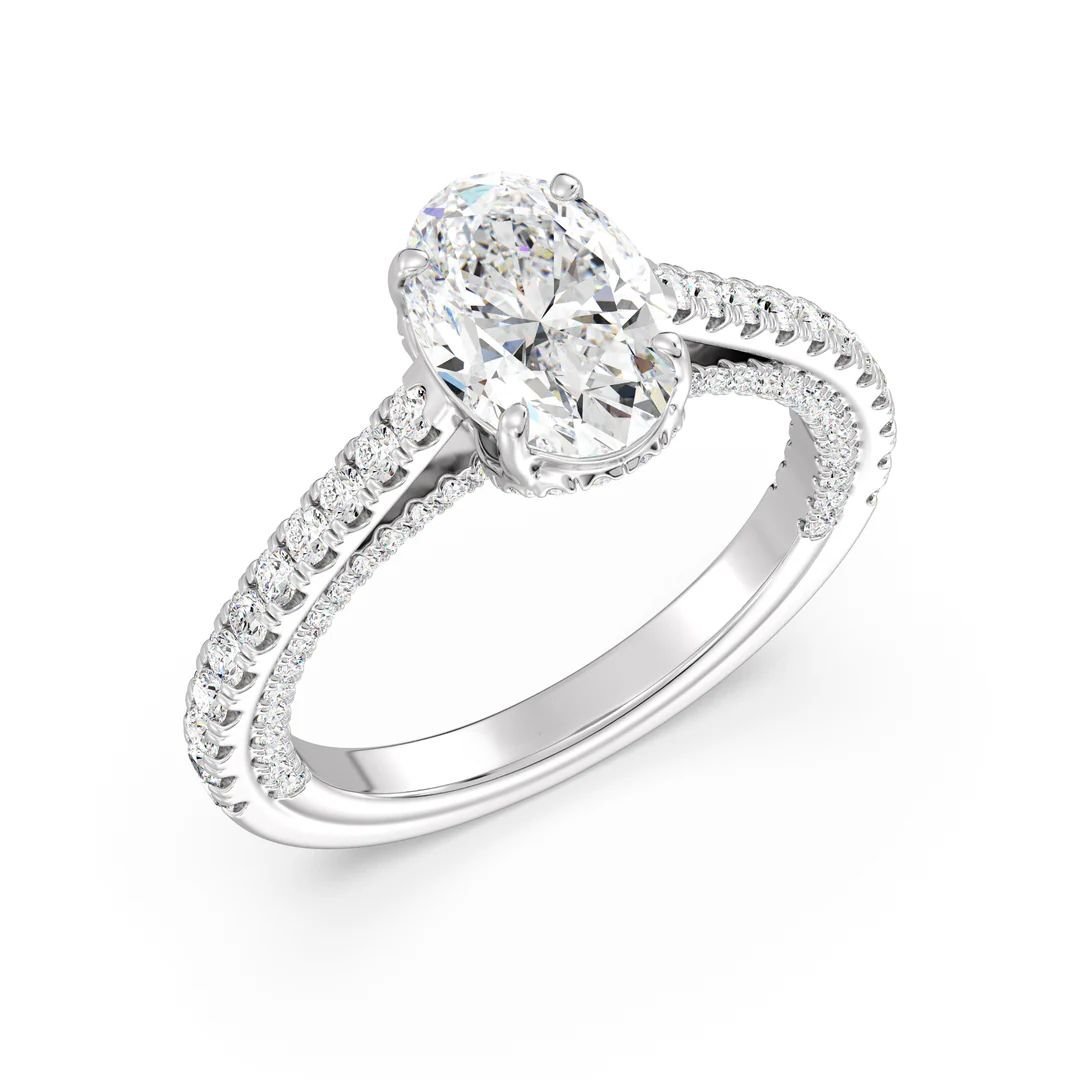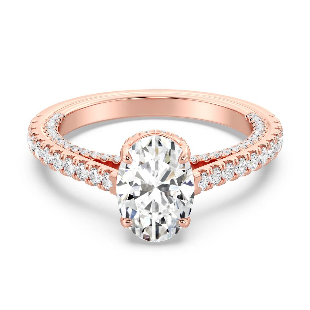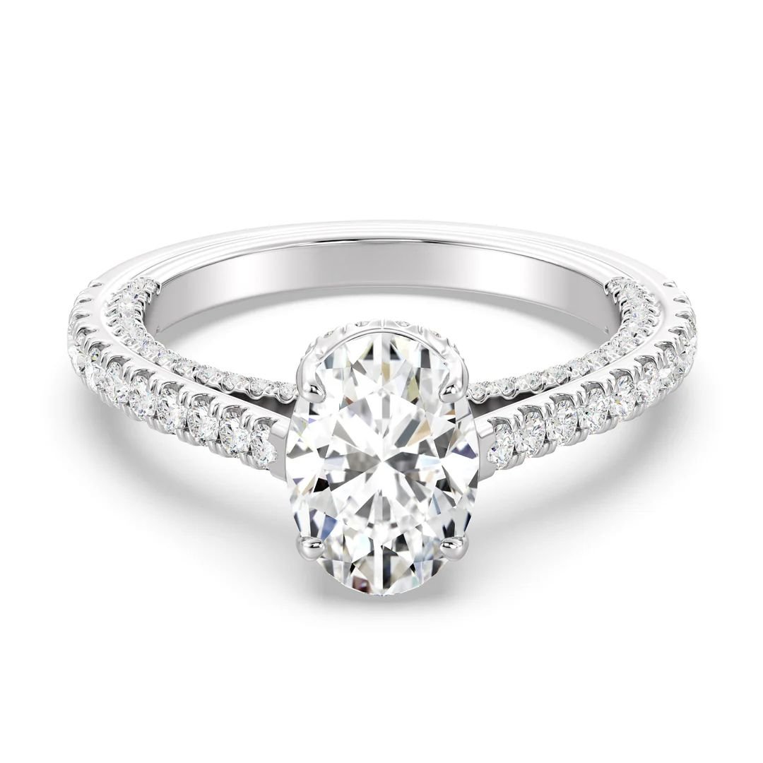 This 2.00ct Oval-Cut Lab-Grown Diamond Engagement Ring, accented with 108 sparkling diamonds and set in solid 18K gold, radiates brilliance, love, and modern luxury—the perfect symbol of forever.