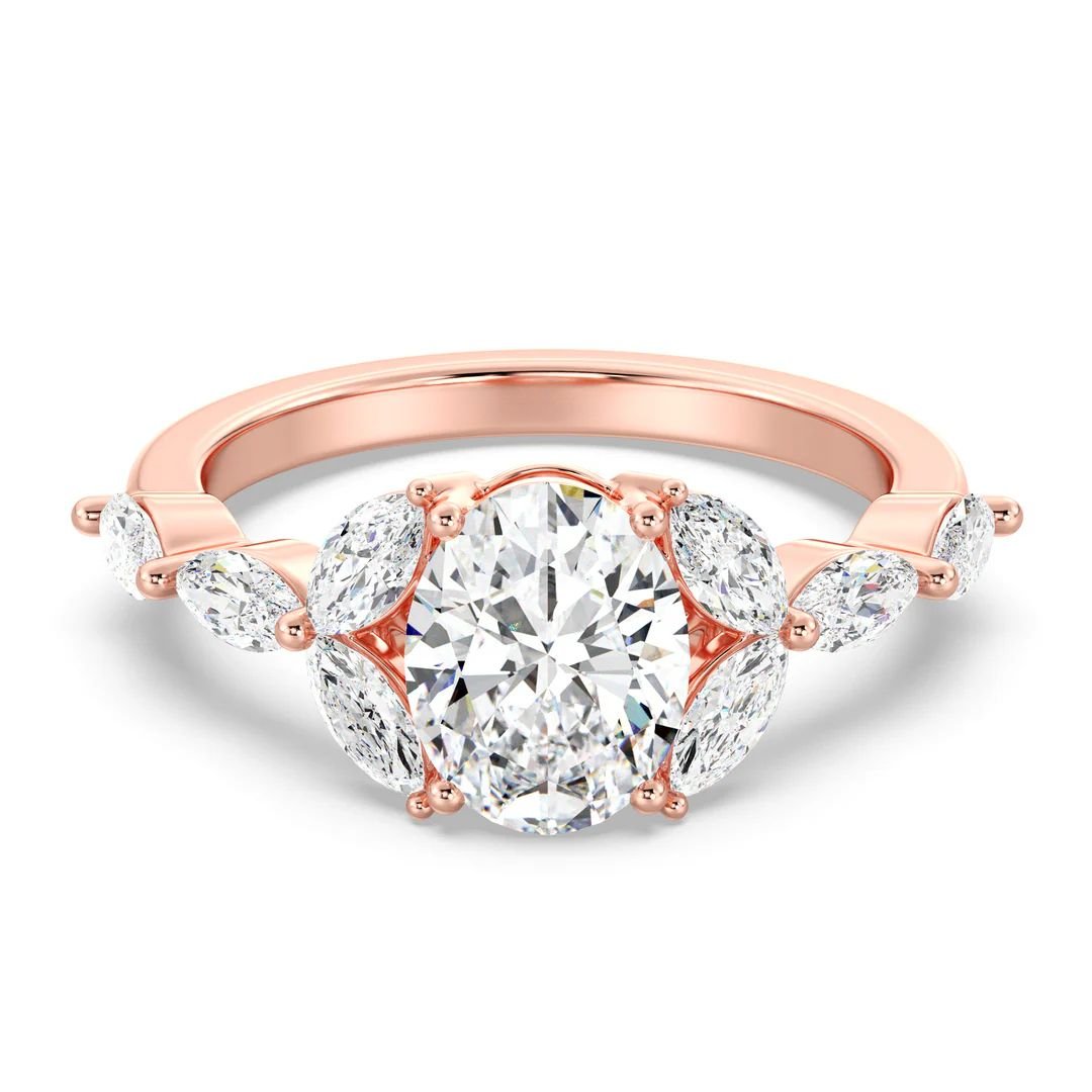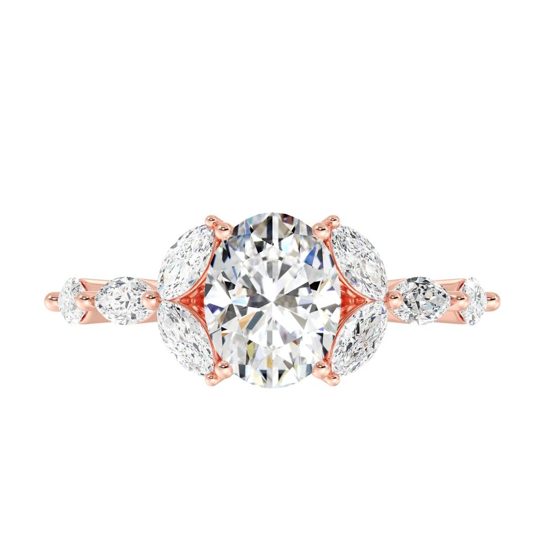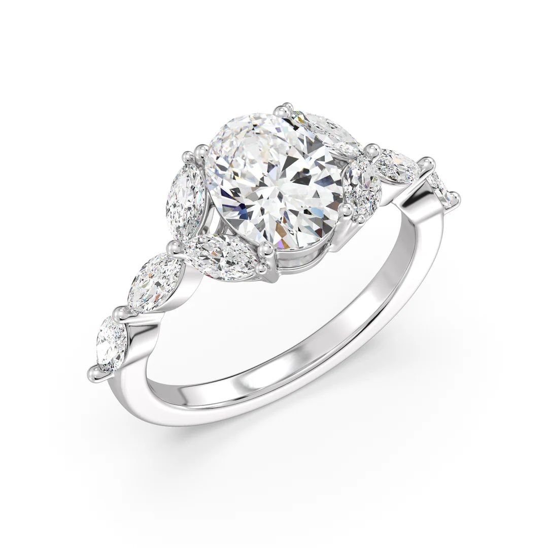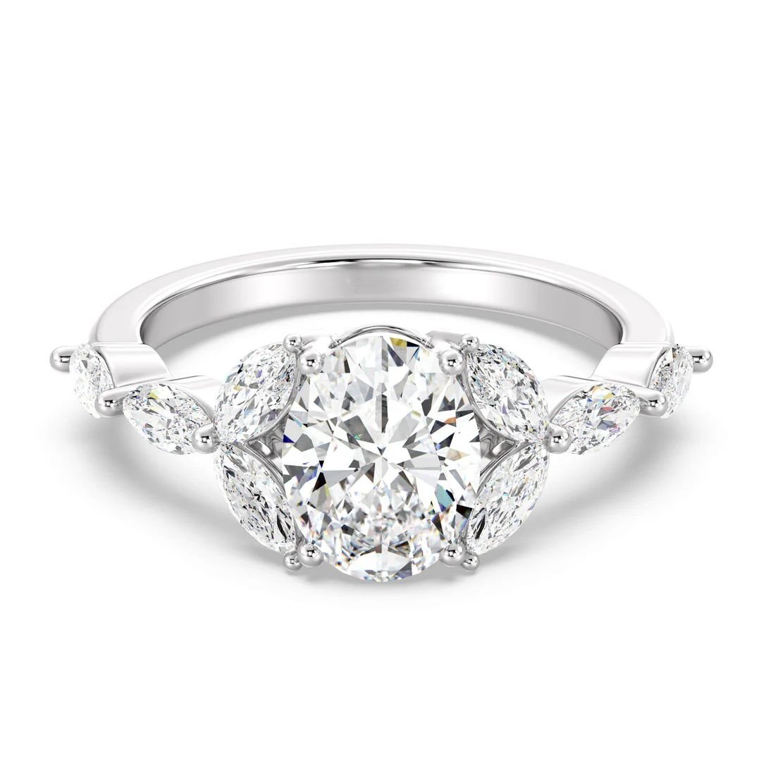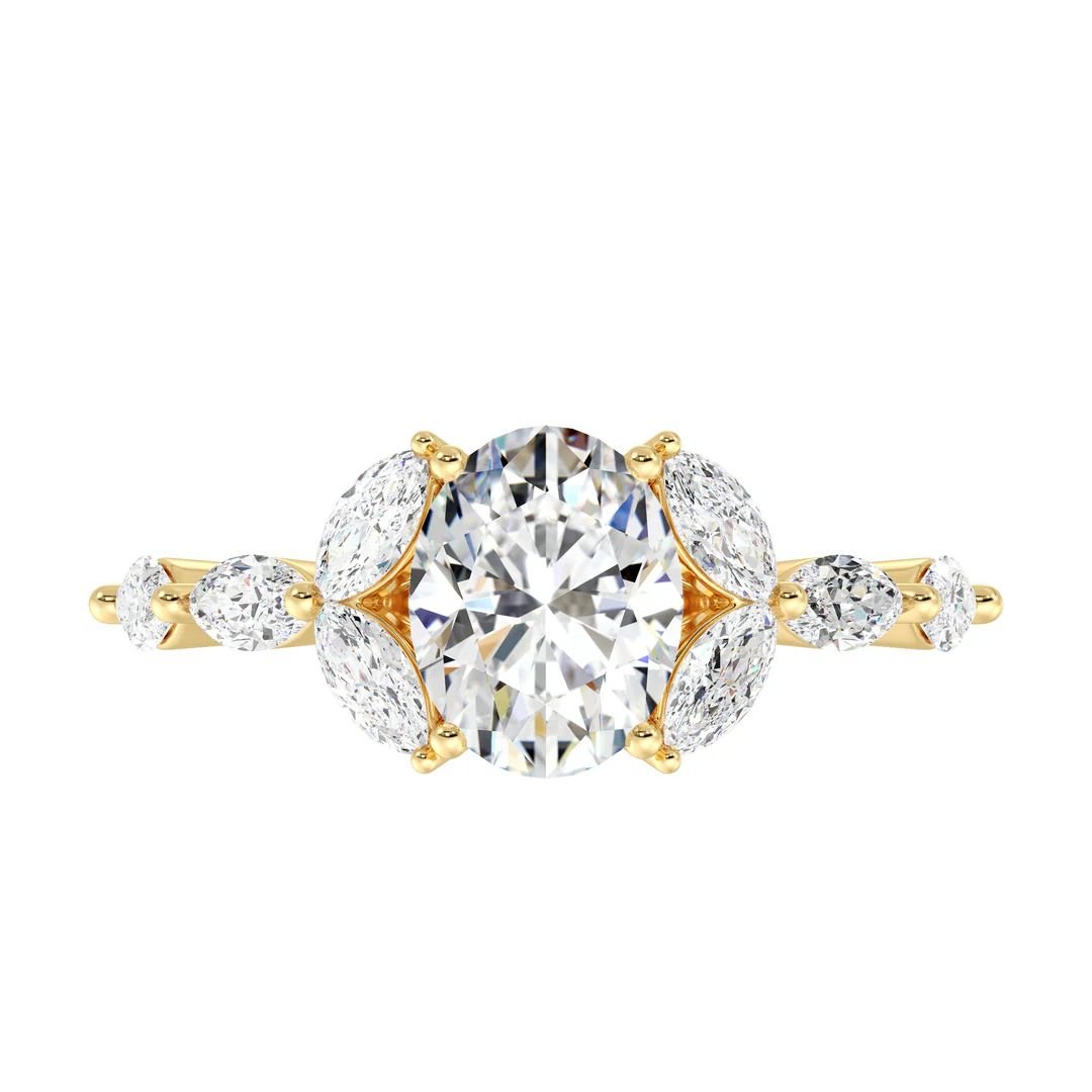 Radiate brilliance with this elegant lab-grown diamond engagement ring. It features a stunning 2.00ct oval-cut center stone, brilliantly accented by 8 sparkling Marquise diamonds and set in solid 18K gold. A perfect symbol of modern luxury and commitment.