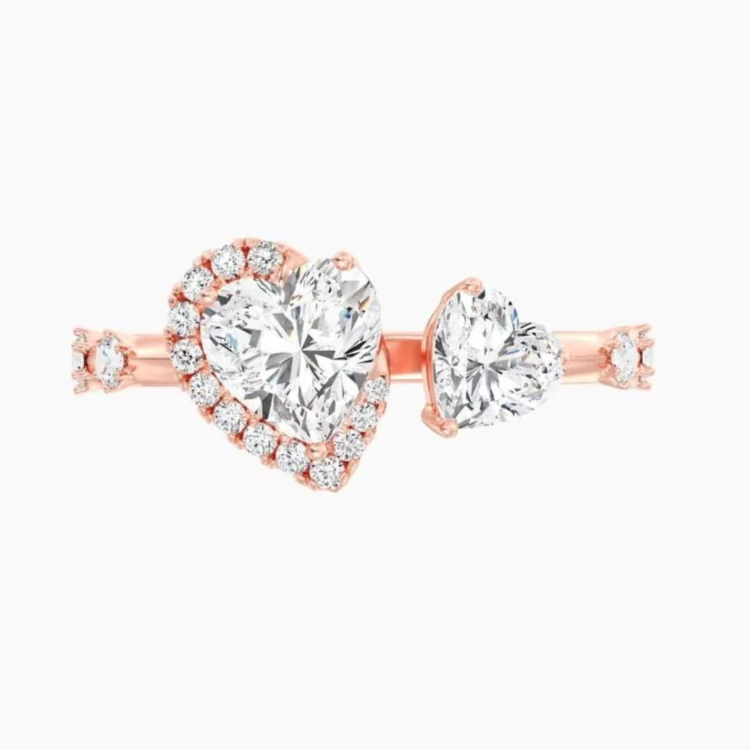 - Main Stones: 1.00ct + 0.50ct Heart-Cut Diamonds