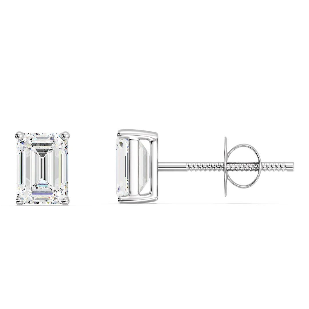 Elevate your elegance with the timeless brilliance of these Emerald-Cut Lab-Grown Diamond Stud Earrings, meticulously crafted to embody sophistication and modern charm. Set in a classic prong setting, each diamond reflects light with striking clarity, highlighting the clean lines and refined beauty of the emerald cut.
