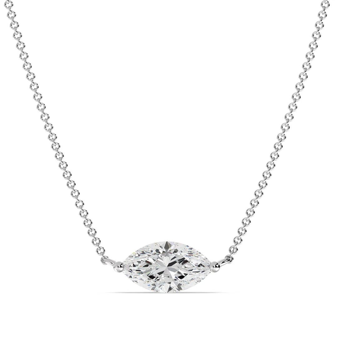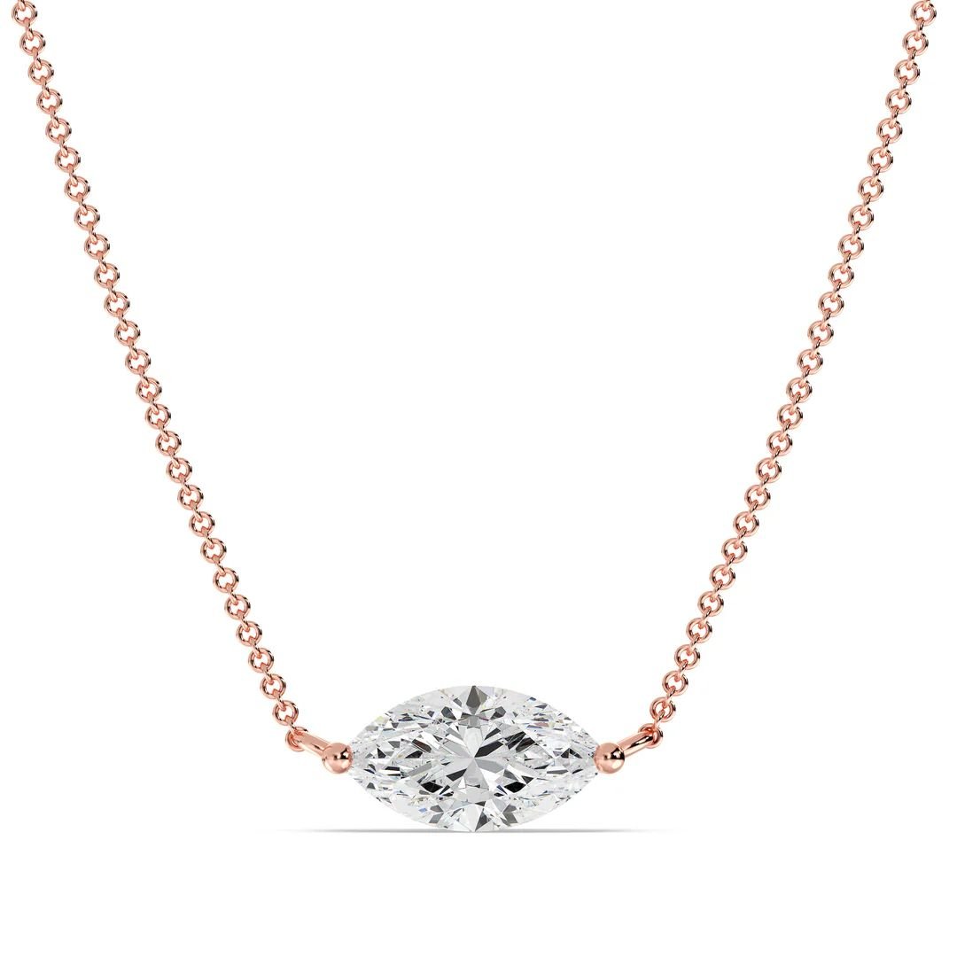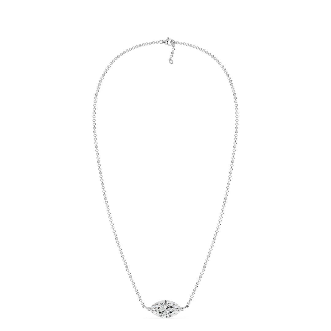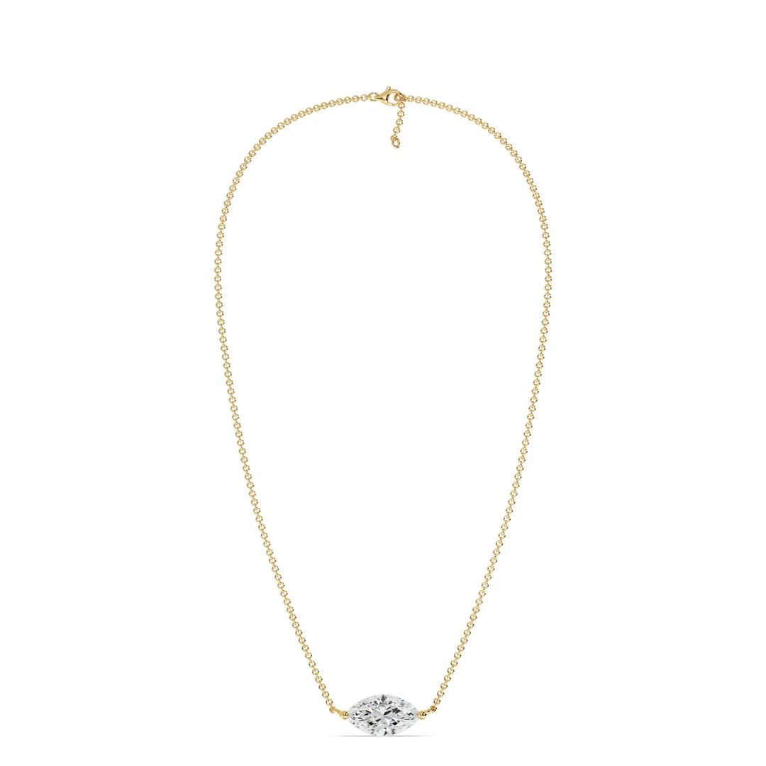 This elegant 2.00 Carat Lab-Grown Marquise Diamond Solitaire Pendant Necklace is the perfect choice for weddings, anniversaries, or any milestone celebration. Featuring a stunning IGI Certified 2.00ct marquise-cut lab-grown diamond, this necklace embodies timeless beauty, sophistication, and ethical craftsmanship. The diamond is expertly set in a classic prong setting and gracefully suspended from an 18K solid gold chain, available in Yellow, White, or Rose Gold, offering a luxurious shine to suit every style. A captivating statement piece for any special occasion, it delivers radiant sparkle and refined elegance. Whether you are seeking a meaningful wedding necklace or an unforgettable gift, this necklace is designed to be treasured for a lifetime.
