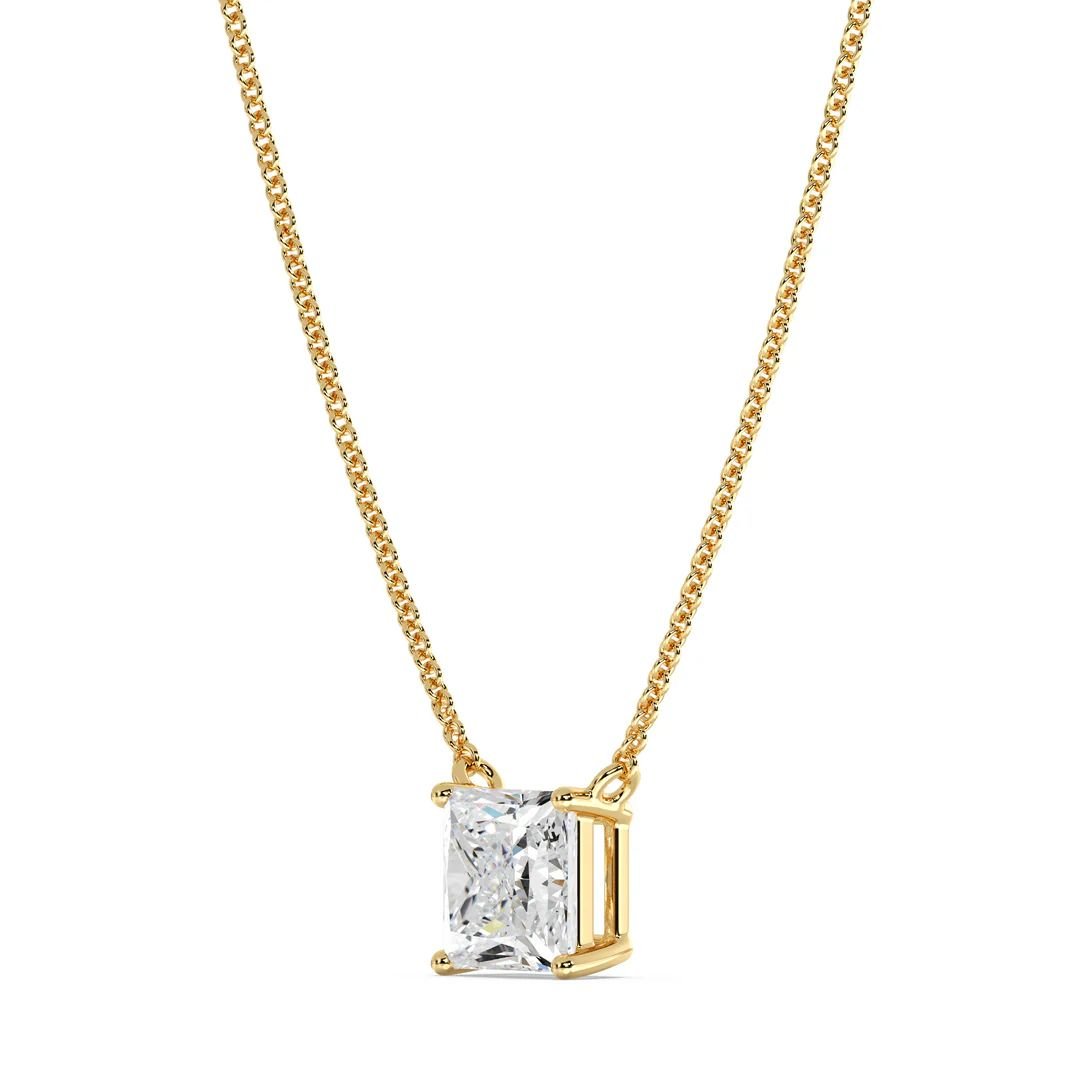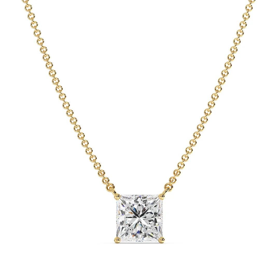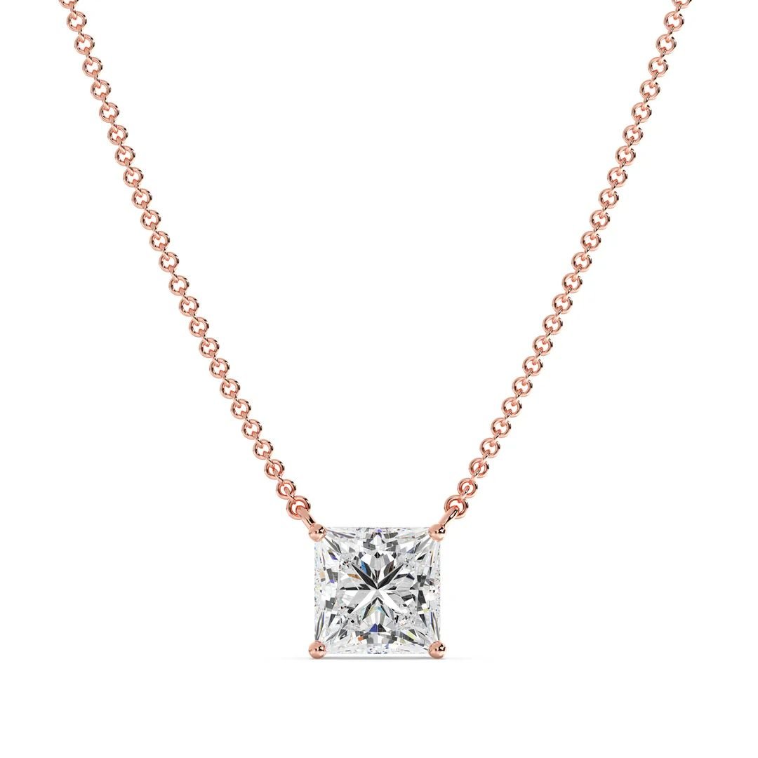 This elegant 2.00 carat Princess Cut Solitaire Lab-Grown Diamond Pendant Necklace is the epitome of elegance and sophistication. Featuring a stunning IGI Certified 2.00ct lab-grown princess-cut diamond, the pendant is beautifully set in a secure prong setting, allowing the diamond to sparkle with exceptional brilliance. The diamond rests gracefully at the center of a delicate 18K solid gold chain, ensuring it catches the light from every angle. Whether you’re looking to elevate your bridal look or seeking a timeless gift, this necklace offers unparalleled beauty and sustainable luxury. The 18K solid gold design is available in three stunning metal tones—Yellow, White, and Rose—allowing you to personalize it to your preference.