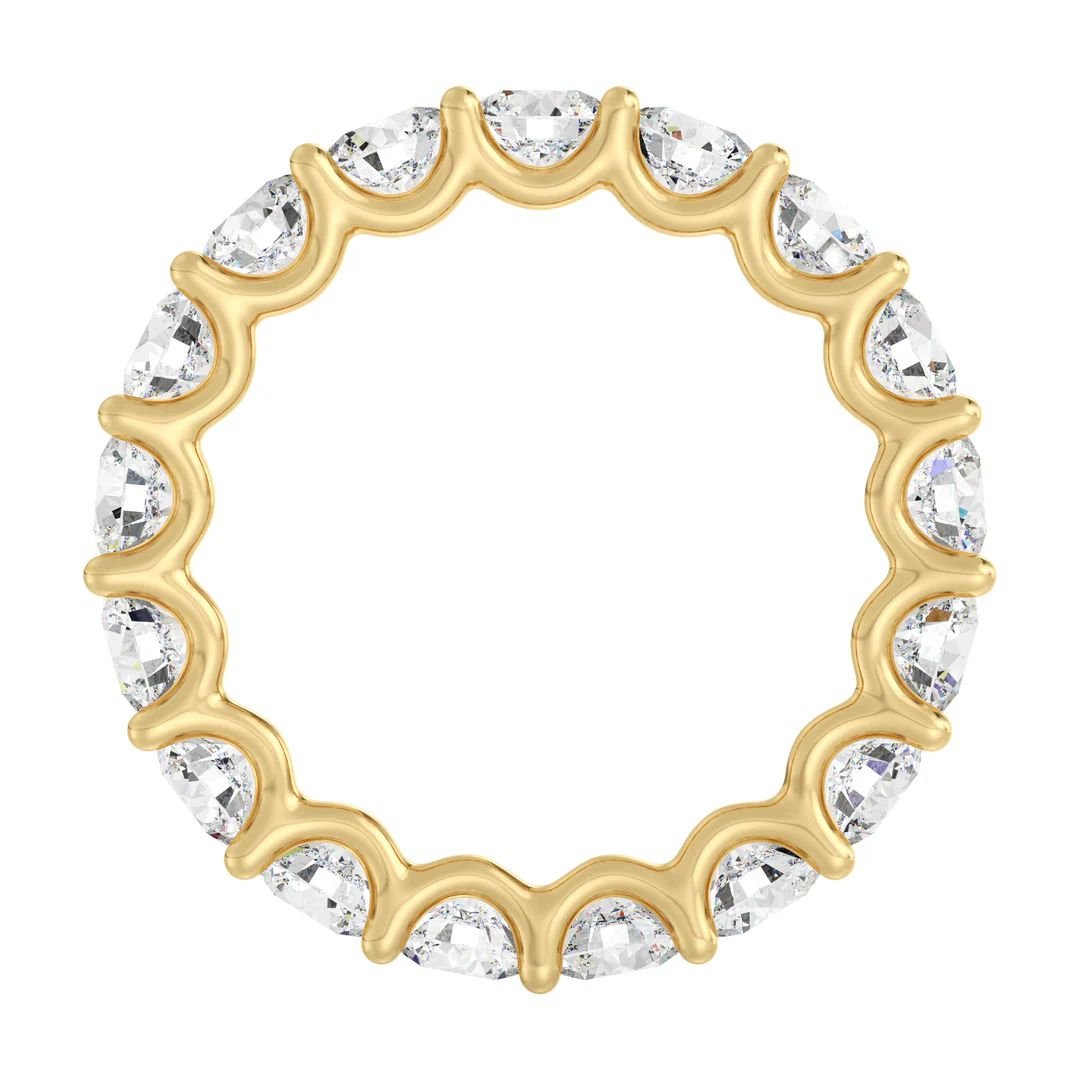 Elegantly designed to dazzle, this Round Lab-Grown Diamond Scallop Eternity Band Ring in 18K Gold features an unbroken circle of 17 round lab-grown diamonds, each meticulously set in a shared prong setting with a scalloped side profile to maximize sparkle and comfort. With a total of 3.40 carats of brilliance, this sustainable piece is perfect as part of a diamond-drenched ring stack or as a standout on its own, and is available in yellow, white, or rose 18K gold for a personalized touch. Please note, full eternity bands cannot be resized due to their continuous diamond design.