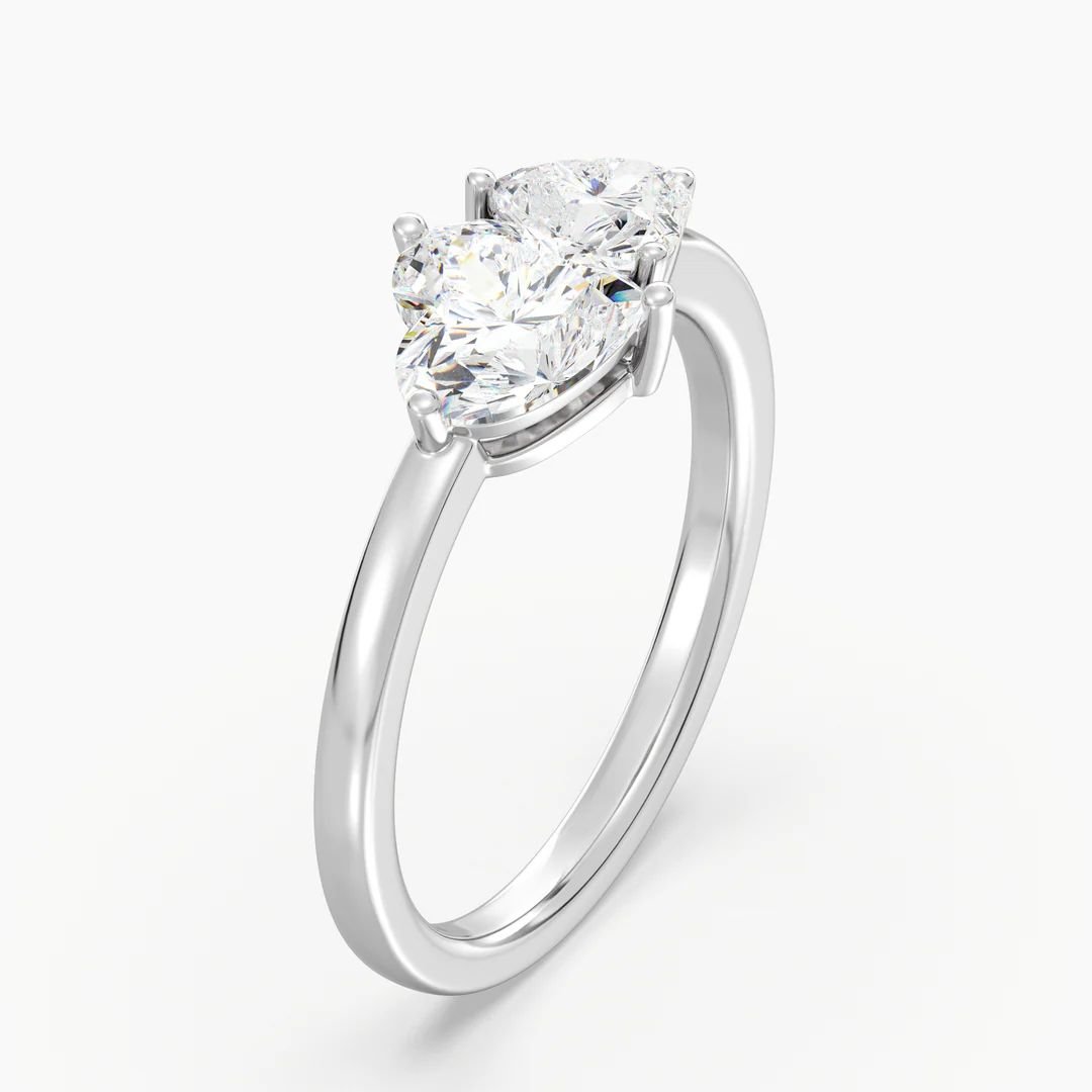 - Main Stones: 1.00ct + 0.50ct Heart-Cut Lab-Grown Diamonds