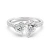 Celebrate your love with this custom-made signature Toi et Moi engagement ring, a timeless symbol of two souls united. Designed for those who cherish romance and refined elegance, this two-stone ring features a 1.50ct pear-cut and a 1.00ct heart-shaped lab-grown diamond, radiating brilliance and sophistication. Set in a classic four-prong setting, the center stones are beautifully complemented by 20 round-cut lab-grown diamonds, totaling 0.36 carats, intricately pavé-set along the band to enhance the overall sparkle. Expertly handcrafted in 18K solid gold, this ring is available in your choice of yellow, white, or rose gold, making it an ideal choice as an engagement ring, anniversary gift, or stackable promise ring that captures the essence of enduring love.